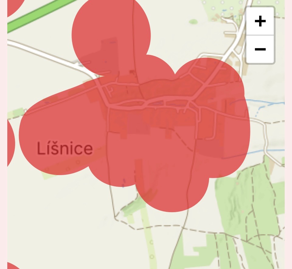 Mapa zákazu ohňostrojů na území obce Líšnice